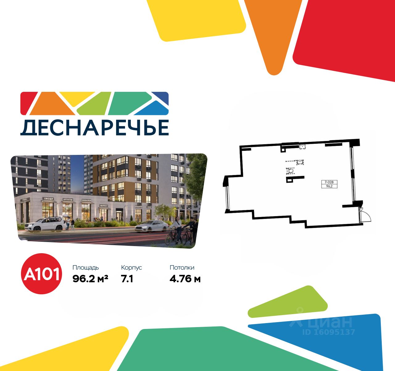 Продается торговое помещение площадью 96.20. на 1-м этаже ЖК "Деснаречье".