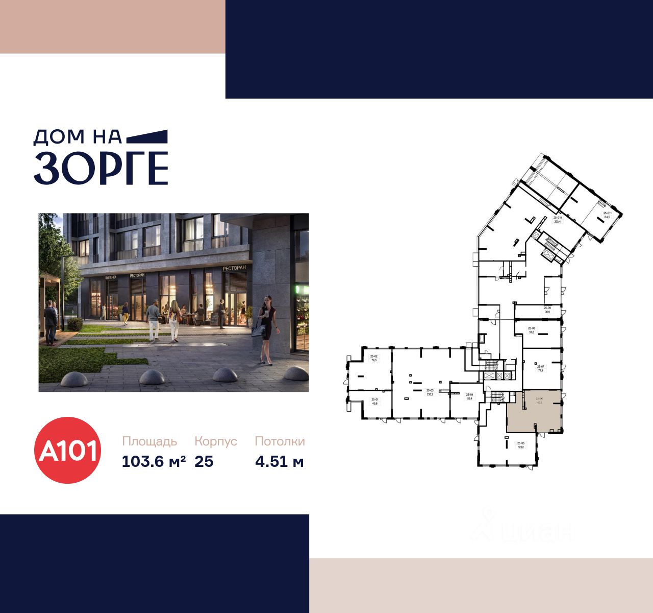 Продается торговое помещение площадью 103.60. на 1-м этаже ЖК "Дом на Зорге".