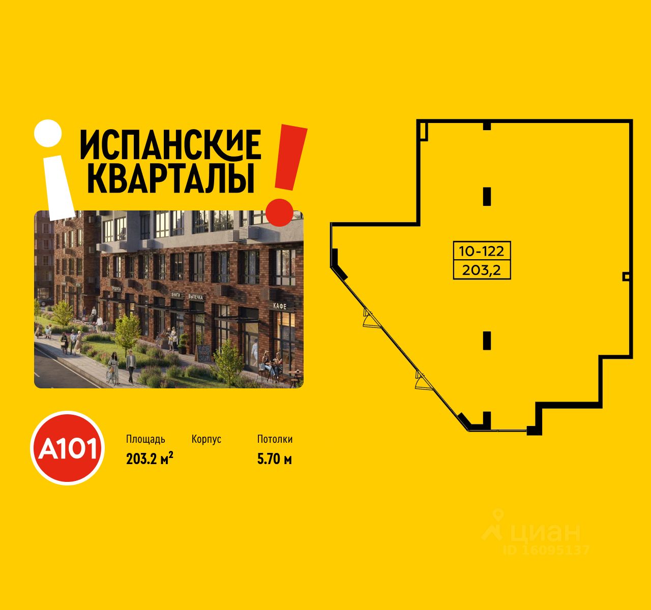Продается торговое помещение площадью 203.20. на 1-м этаже ЖК "Испанские кварталы".