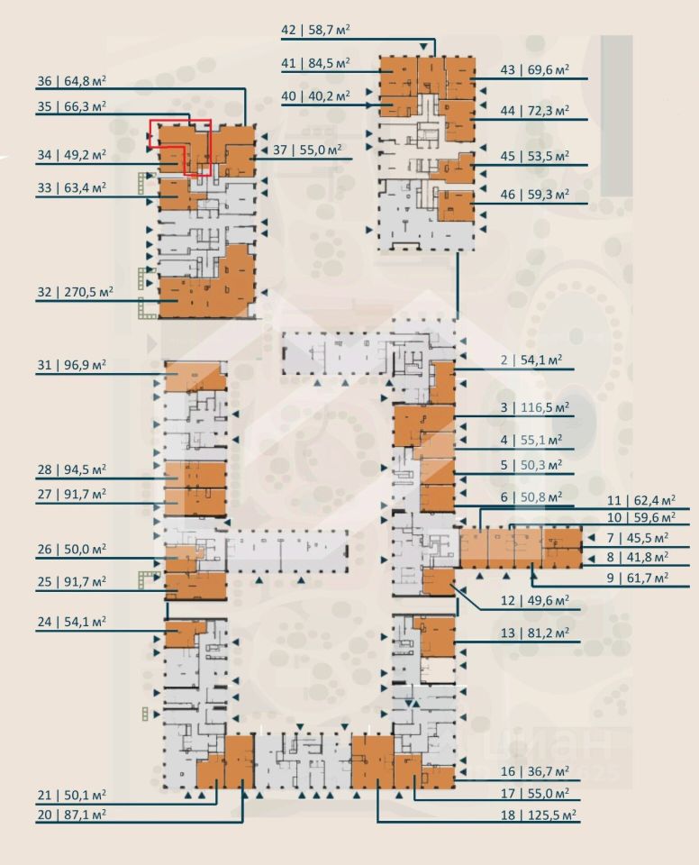 1090727 . Предлагаем помещение свободного назначения формата street-retail в ЖК бизнес-класса "SOUL", площадью 66.3 кв. м, расположенное на первом этаже 23-этажного жилого дома. Корпус: Unique. Этап 3. Без комиссии для покупателя.