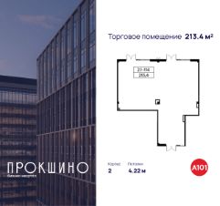 Продаётся торговое помещение площадью 213.4 кв. м. в Бизнес-квартал "Прокшино". Без отделки. Окна с видом во двор и на улицу. Высота потолков 4.22 м. Выделенная электрическая мощность — 130 кВт. Общий вход с улицы. Стоимость помещения — 106 324 416 руб. Способы оплаты и более подробная информация по телефону.