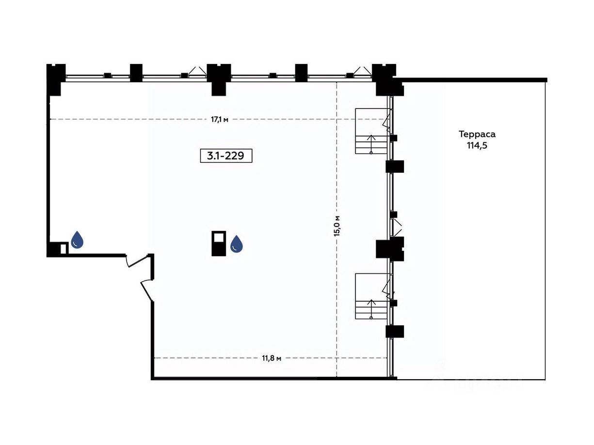 • высота потолков 3.4 м,