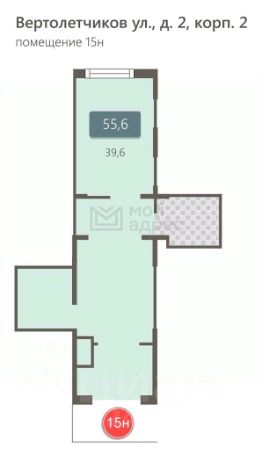Коммерческое помещение площадью 55.6 м², расположено по адресу: г. Москва, улица Вертолётчиков, 2к2, помещение 15Н, район Некрасовка. Объект занимает 1 этаж в здании с этажностью 25 этажей. Помещение без отделки, свободного назначения, имеет отдельный вход.