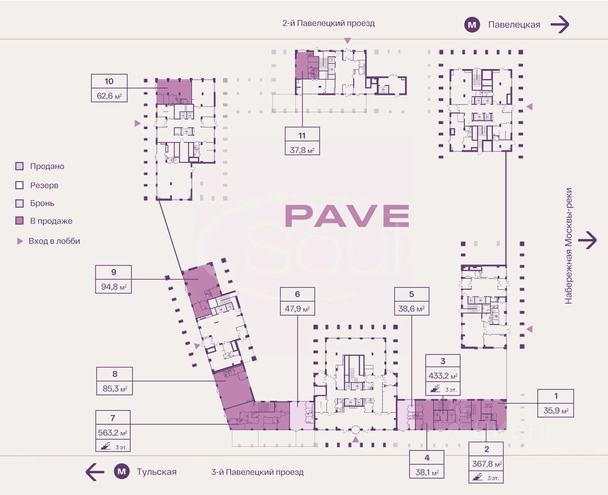1087115 Проект PAVE — это масштабный квартал бизнес-класса в престижной зоне Даниловского района, рядом с историческим центром Москвы и набережной от Кремля до Коломенской. Локация отличается высокой плотностью населения и развитой инфраструктурой: в окружении проживает около 16 500 жителей, а внутри комплекса предусмотрено 847 квартир в шести корпусах переменной этажности. В пешей доступности находятся станции метро Тульская и Павелецкая, а также проектируемая станция МЦД всего в пяти минутах пешком. До Садового кольца — 10 минут езды, до Кремля — около 20 минут.