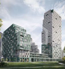 -ЖК состоит из 3 корпусов переменной этажности (от 14 до 28 этажей), рассчитанных на 545 квартир;