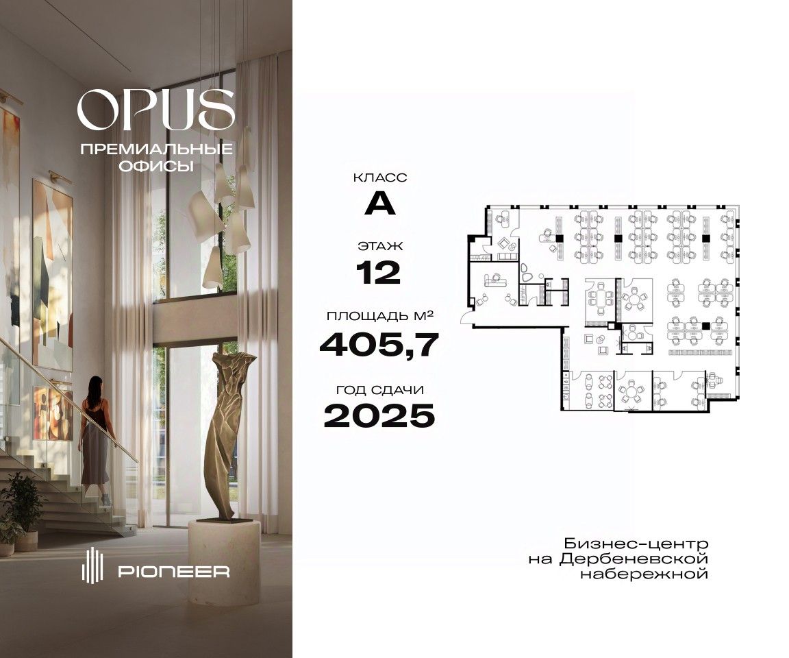 Выгода 2,6 млн. руб. на офисы от 100 м2 до 30 ноября 2025 года. OPUS станет первым за 15 лет офисным проектом А класса, расположенным на первой линии Москвы-реки, в работе над которым работали архитектурное бюро Цимайло Ляшенко и Партнеры, а также дизайнер Наталья Белоногова. Эффективные планировки и зонирование пространства, максимальное количество естественного освещения, богатая инфраструктура и интерьеры обеспечивают абсолютную ликвидность и потенциал роста цены ко вводу в эксплуатацию более 40%. Важное преимущество OPUS - оригинальное дизайнерское решение офисного двора: он будто парит на круглых камнях, застывших в толще льда. Парк станет местом отдыха для сотрудников, а также возьмет на себя роль зеленого транзита между бизнес-центром и улицей. Просторное, но камерное лобби выполнено в несвойственном для офисных пространств стиле и создает гармоничную атмосферу единения с природой. Чистые линии, натуральное дерево и мрамор, уютные зоны с камином, удобные премиальные диванные группы. Павелецкий деловой район - второй по величине кластер после "Москва-Сити" и один из самых востребованных, что подтверждается низким уровнем вакантных площадей в локации. Преимущества бизнес-центра OPUS: - Потолки 3,8 м - 5 мин. от Садового кольца - Торговая инфраструктура 4 228 м2 - Видовые террасы на 13 этаже - Паркинг на 175 м/м - Продажа по ДДУ - Собственная УК Застройщик PIONEER ключевой игрок рынка коммерческой недвижимости Москвы: 22 года на рынке, 31 проект в портфеле компании. 1 среди девелоперов офисной недвижимости по рейтингу РБК от 2021 года. "Девелопер года" по версии Workplace Awards 2023. Звоните, и мы с удовольствием расскажем все подробности о проекте!