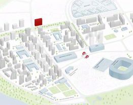 Помещение расположено в центральной части полуострова, на прогулочном бульваре, который ведет от штаб квартиры Ростеха к Экопарку Примавера на набережной Москвы-реки.