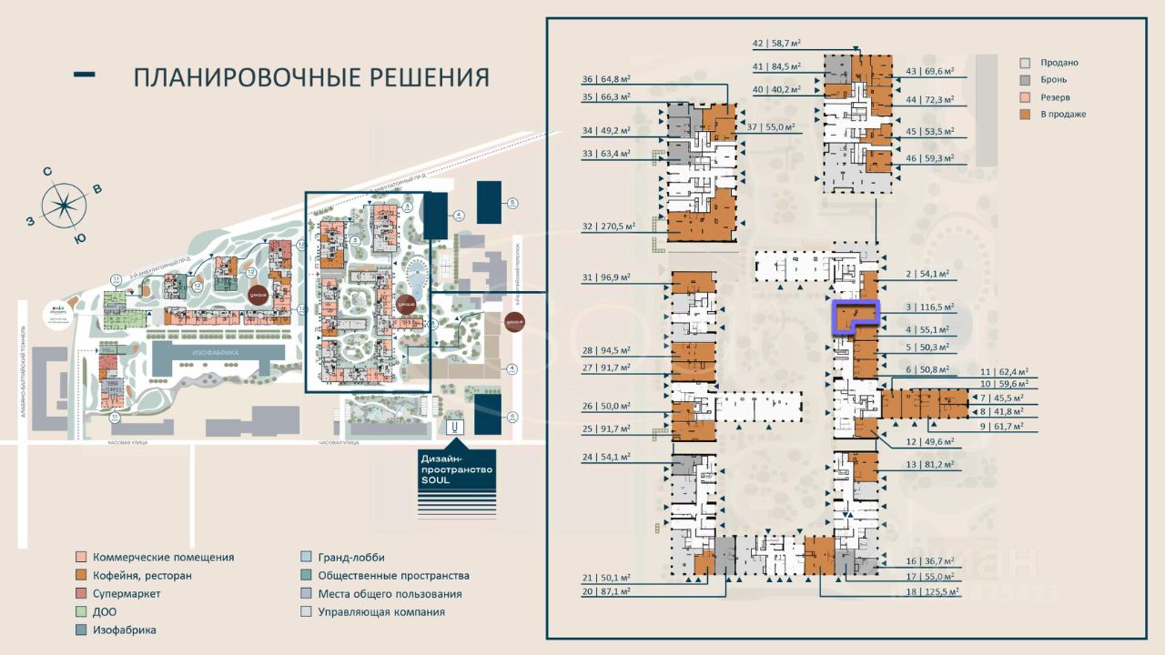 Совокупность факторов продуманная транспортная доступность, интенсивный пешеходный и автомобильный трафик, высокая плотность и платежеспособность населения, а также современные технические параметры помещений делает коммерческие пространства в квартале SOUL привлекательным решением для операторов розничной торговли, услуг, общественного питания и для инвесторов, ориентированных на формирование стабильного арендного бизнеса в перспективной локации.