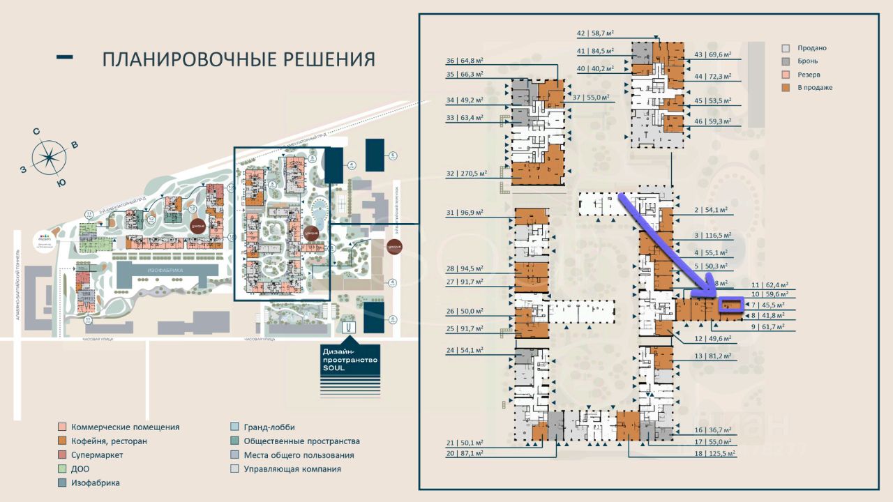 Совокупность факторов продуманная транспортная доступность, интенсивный пешеходный и автомобильный трафик, высокая плотность и платежеспособность населения, а также современные технические параметры помещений делает коммерческие пространства в квартале SOUL привлекательным решением для операторов розничной торговли, услуг, общественного питания и для инвесторов, ориентированных на формирование стабильного арендного бизнеса в перспективной локации.