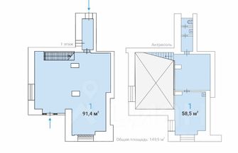 Антресоль - 58,5 м2.