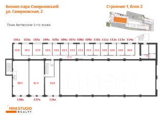 Продажа офисного помещения от 88.5 м2 в бизнес-парке "Смирновский" (ул. Смирновская, д. 2) Лот 128а на плане