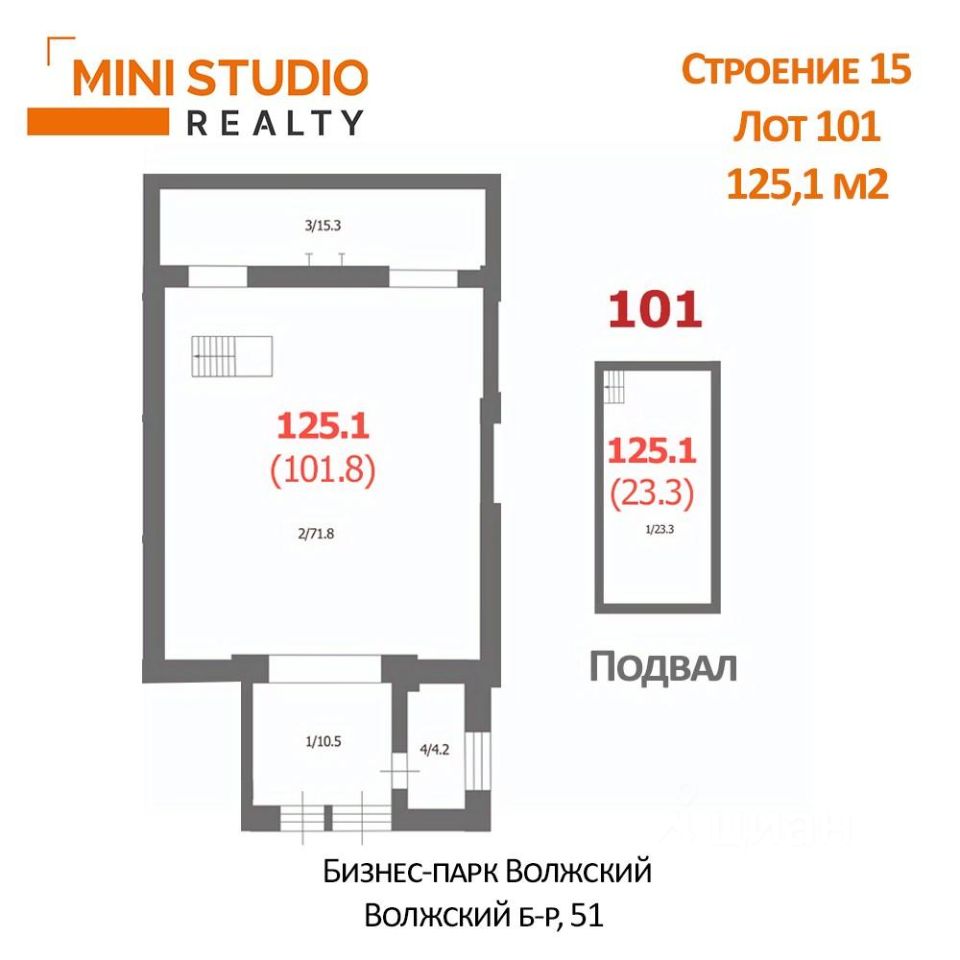 Продается помещение под ресторан, банкетный зал 125 кв.м со входами с 1-го этажа, расположенный на территории Бизнес-парка Волжский (лот 101 на плане)