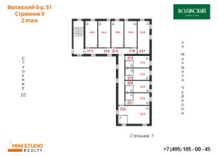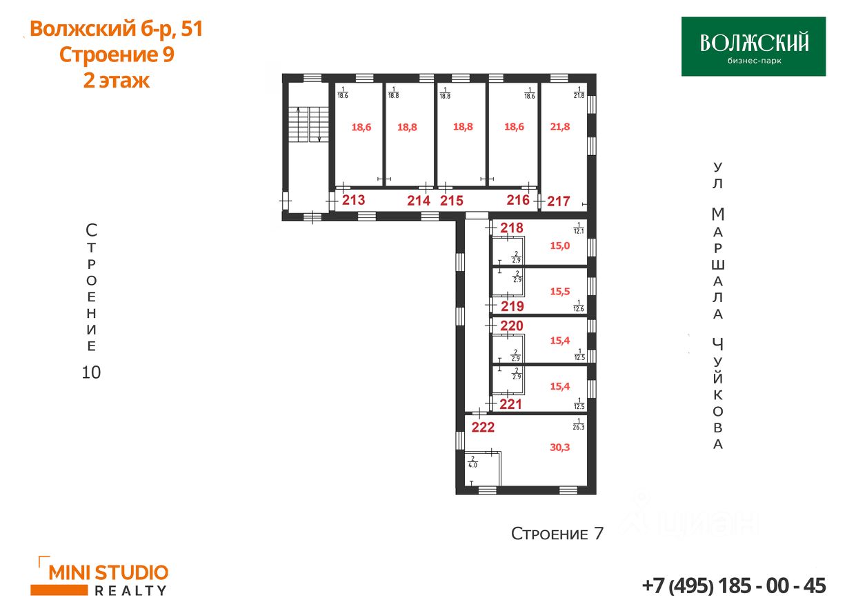 Продается помещение под офис 21,8 кв.м на 2 этаже в Бизнес-парке Волжский (лот 217 на плане).