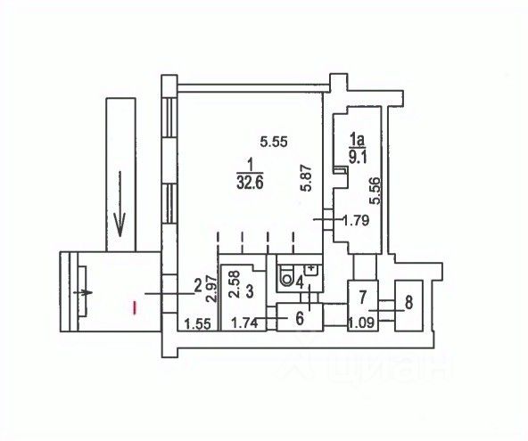 Общая площадь: 57,7 кв.м.