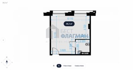 площадью 36,3 м2.