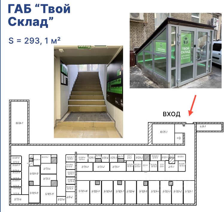 Площадь 293,1 кв. м. 78 боксов (от 0.5 до 30 кв. м).