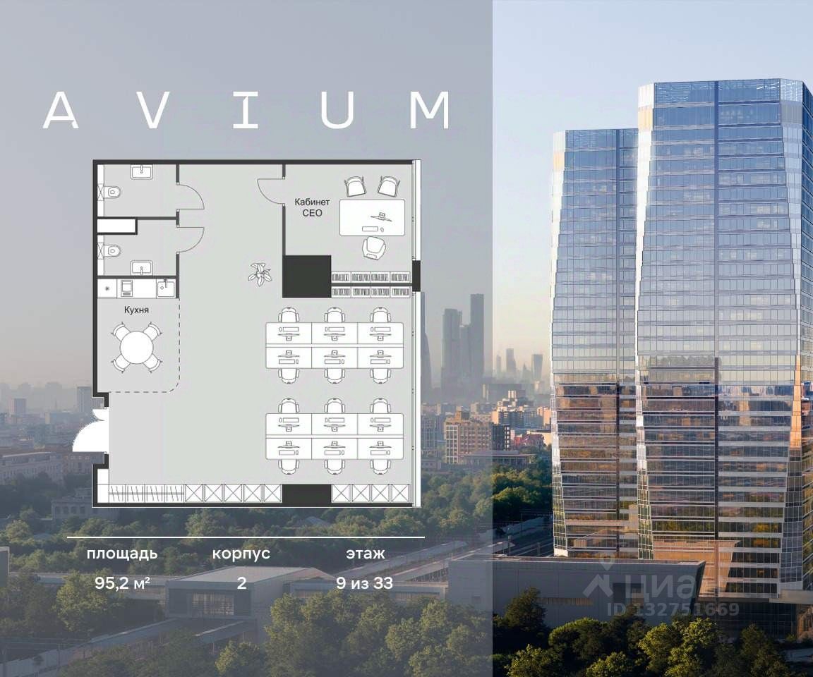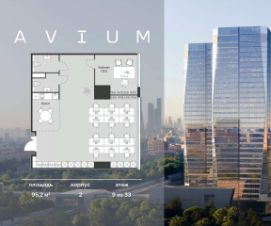 Продажа премиальных офисов в бизнес центре AVIUM. Две 34-этажные башни, объединённые галереей и дочерним корпусом.