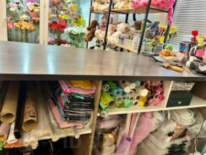 * Профессиональное флористическое оборудование: огромный стол флориста, 2 барных стула, стеллажи, полки, мокрая точка (внутри магазина!) не надо таскать тяжелые вазоны с водой, большая вместительная раковина с гибким смесителем на несколько режимов, баллон гелия на 40 л.