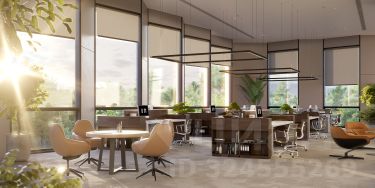 - На первых этажах офисных зданий просторные лобби с комфортной зоной ожидания, супермаркет, торговые помещения, отделения банков и сервисных служб, фитнес-студия