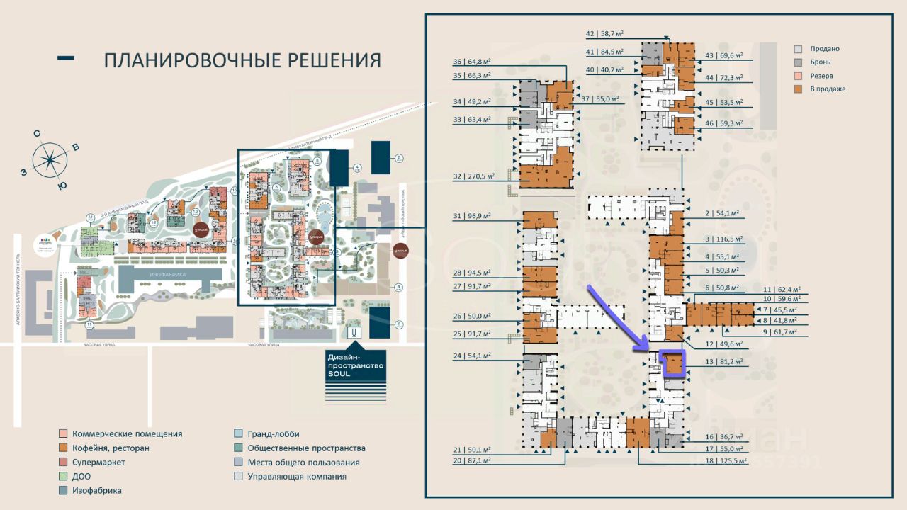 Совокупность факторов продуманная транспортная доступность, интенсивный пешеходный и автомобильный трафик, высокая плотность и платежеспособность населения, а также современные технические параметры помещений делает коммерческие пространства в квартале SOUL привлекательным решением для операторов розничной торговли, услуг, общественного питания и для инвесторов, ориентированных на формирование стабильного арендного бизнеса в перспективной локации.