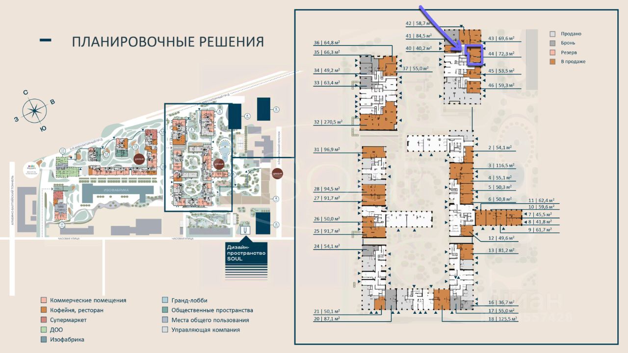 Совокупность факторов продуманная транспортная доступность, интенсивный пешеходный и автомобильный трафик, высокая плотность и платежеспособность населения, а также современные технические параметры помещений делает коммерческие пространства в квартале SOUL привлекательным решением для операторов розничной торговли, услуг, общественного питания и для инвесторов, ориентированных на формирование стабильного арендного бизнеса в перспективной локации.