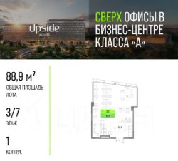 В продаже офисное помещение в строящемся бизнес-центре класса "А" Upside Кунцево. Ключи в ноябре 2025 года. На сегодняшний день бизнес-центр распродан более чем на 70%, но в наличии есть имиджевые офисы нового поколения от 79 м² до возможности приобрести целый этаж. До 31.10.2025 года действует скидка 7% на избранные офисы. Рассрочка от застройщика, ПВ 30% Эко-архитектура современной урбанистики и свой природный парк Бизнес-центр состоит из двух корпусов, вписанных в природный ландшафт. Такой эффект достигается благодаря концептуальным решениям: имитации растительных форм и интеграции природных элементов в объект. Стилистика интерьера вдохновлена органической архитектурой. Образ пространства дополнят объекты современного искусства. Впечатляющая транспортная доступность Бизнес-центр Upside Кунцево находится в престижном районе на западе Москвы, в 50 метрах от трёх станций метро "Кунцевская", новой платформы БКЛ и одноимённой станции МЦД-1. Время в пути: • до съезда на Рублёвское шоссе — 1 минута, • до Кутузовского проспекта — 5 минут, • до Москва-Сити и Нового Арбата — 15 минут. Инфраструктура для продуктивной работы Внутренняя инфраструктура разнообразна и насыщена, что позволит создать комфортную среду для резидентов. Для работы предусмотрены: • переговорные комнаты, • коворкинги, • конференц-зал, • мультиформатные деловые пространства, • двухуровневый подземный паркинг. Сотрудники и гости БЦ смогут воспользоваться кафетерием с выходом на открытую террасу, где можно дистанционно заказать блюда. На первом этаже расположится коммерческая инфраструктура: продуктовый ритейл, кафе и рестораны, кулинария, аптека, салон красоты, постаматы. Высокотехнологичный бизнес-центр с современными инженерными решениями Бизнес-центр Upside Кунцево получил сертификат GREEN ZOOM за соответствие экологическим требованиям и энергосбережение. В здании используются энергоэффективное оборудование и материалы, а также системы рекуперации тепла. В бизнес-центре круглый год поддерживается комфортный микроклимат благодаря автоматизированной системе управления, приточно-вытяжной вентиляции и центральному кондиционированию. Системы безопасности и комфорта включают: • видеонаблюдение, • FACE ID, • распознавание госномеров для доступа в паркинг, • скоростные бесшумные лифты с интеллектуальным управлением, • бесплатный Wi-Fi. Девелопер проекта Upside Development.