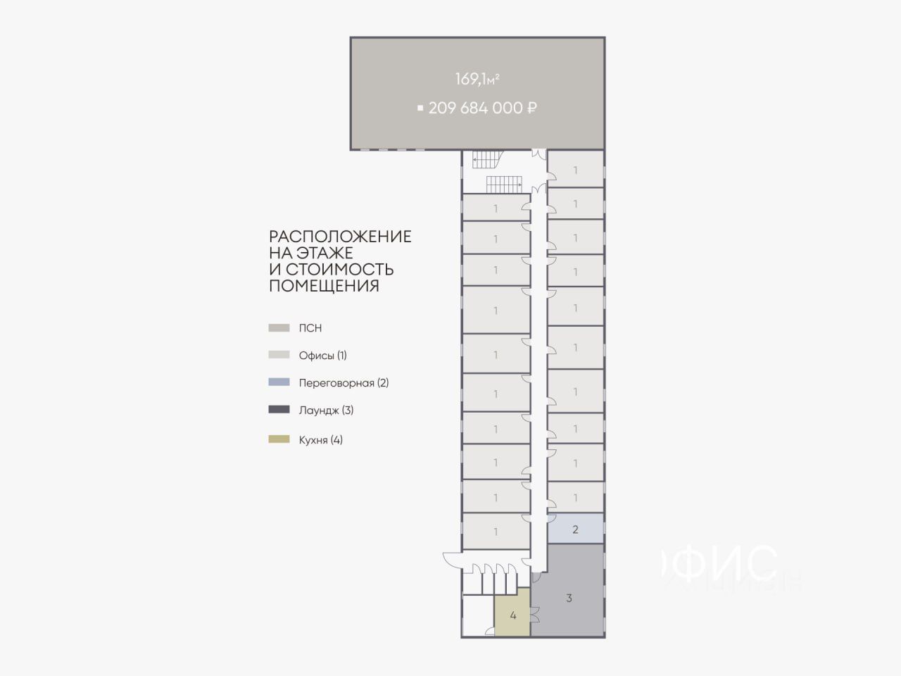 Помещение свободного назначения (ПСН) без отделки 169,1 м² - свободная планировка подходит под офис, шоурум, клинику, ресторан, штаб-квартиру.