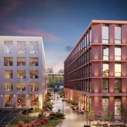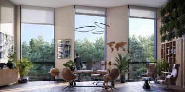 - На первых этажах офисных зданий просторные лобби с комфортной зоной ожидания, супермаркет, торговые помещения, отделения банков и сервисных служб, фитнес-студия
