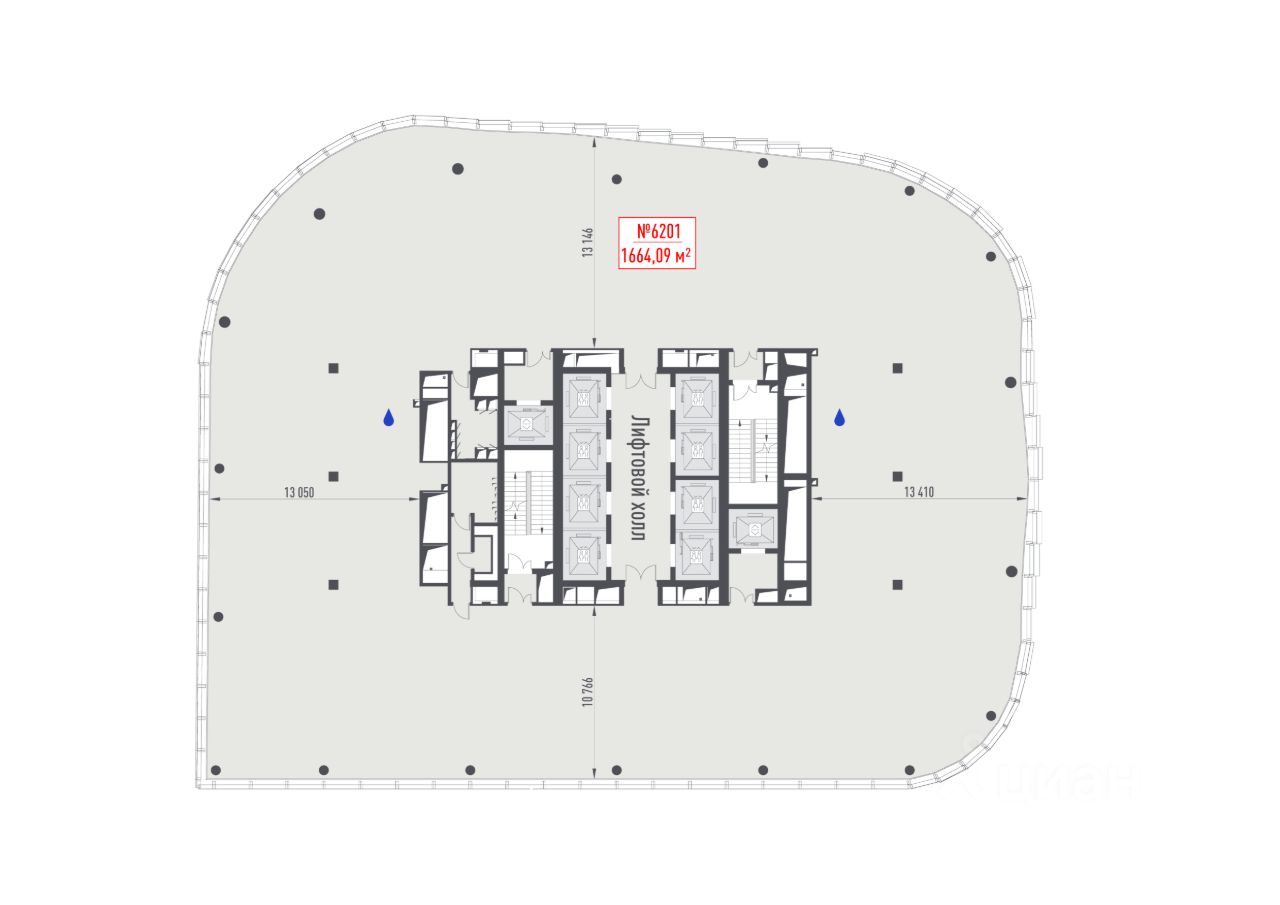 Предлагается офисное помещение 1664.09 м² на 62 этаже офисного небоскреба TOP Tower.