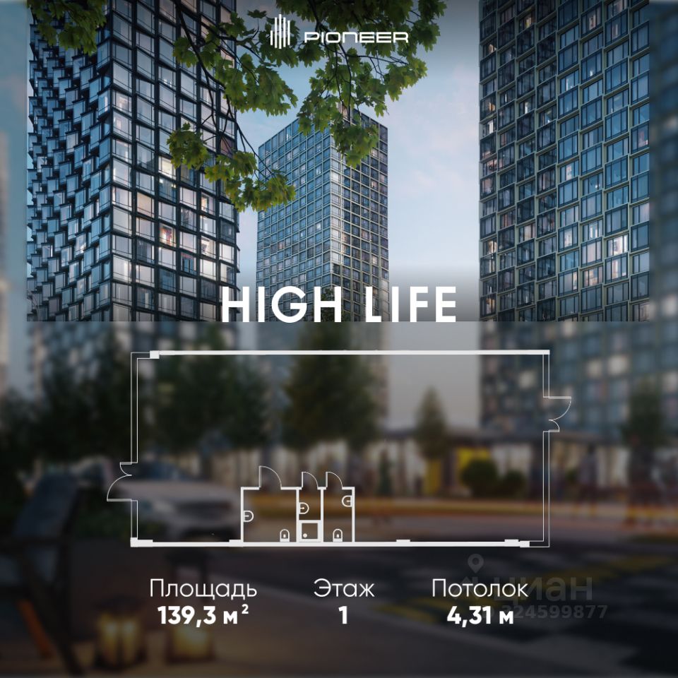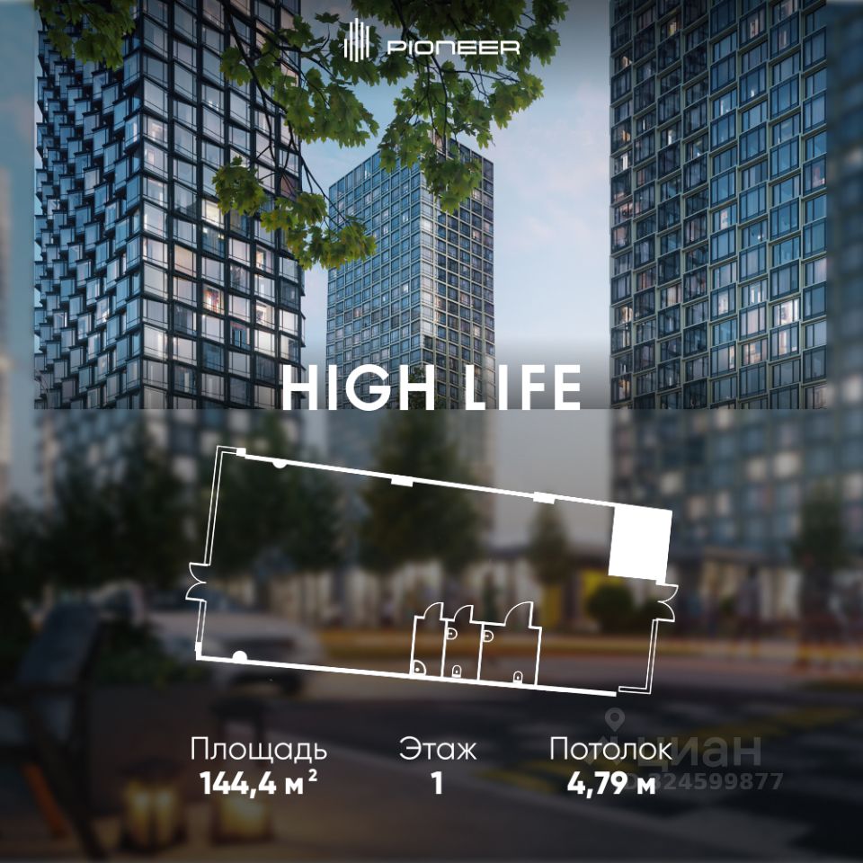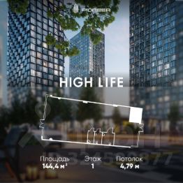 Помещение площадью 144,4 кв. м. в комплексе небоскребов HIGH LIFE. В шаговой доступности от м. Павелецкая и Садового кольца. Отдельный вход. Витринное остекление 4,5 м.