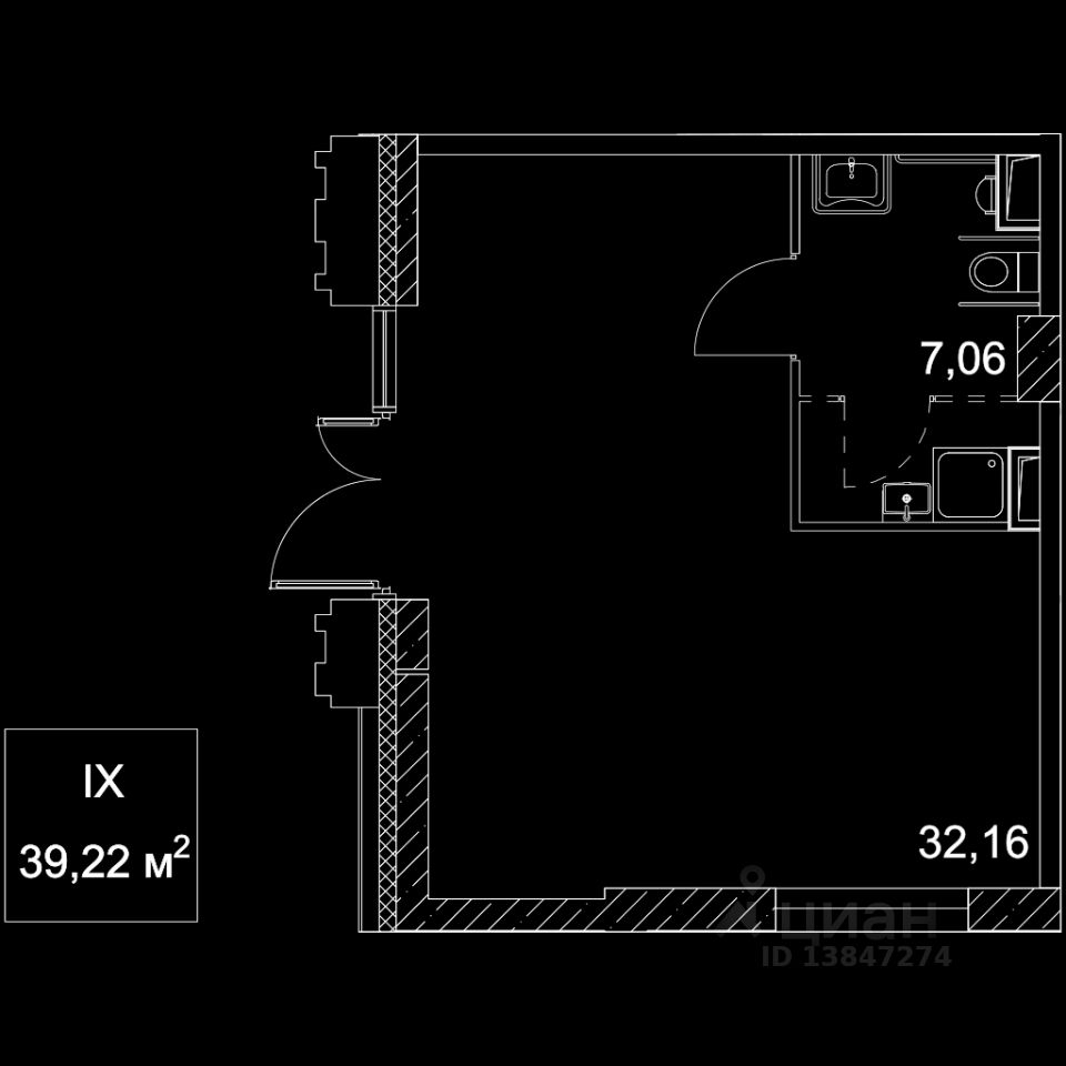 • Общая площадь39,22 м²