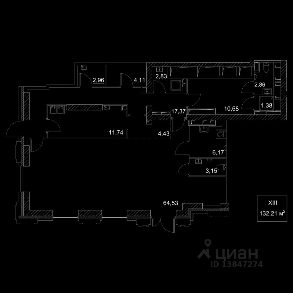 • Общая площадь132,21 м²