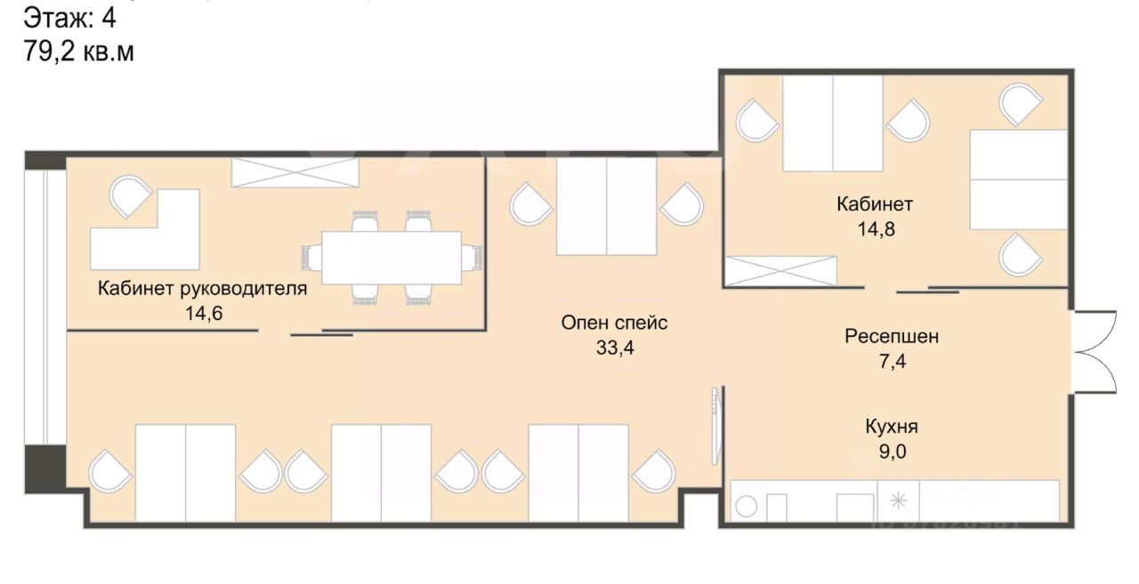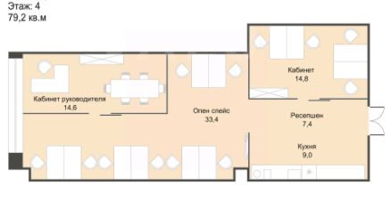 - Изолированный кабинет 14,8 м² на 4 рабочих места