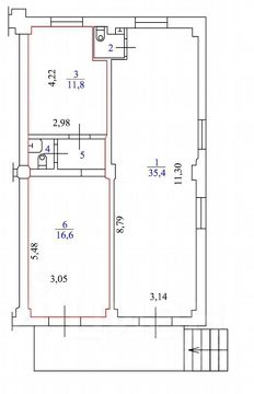 Помещение прямоугольной формы, угловое (свободная планировка).