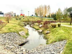 Закрытый поселок, шлагбаум на въезде. Ухоженная территория.