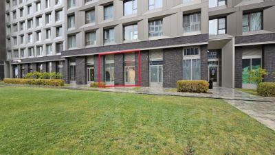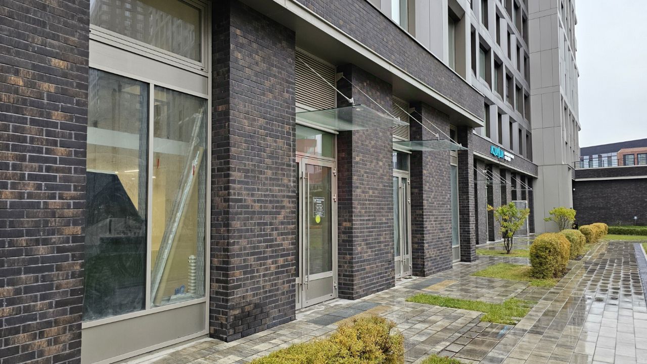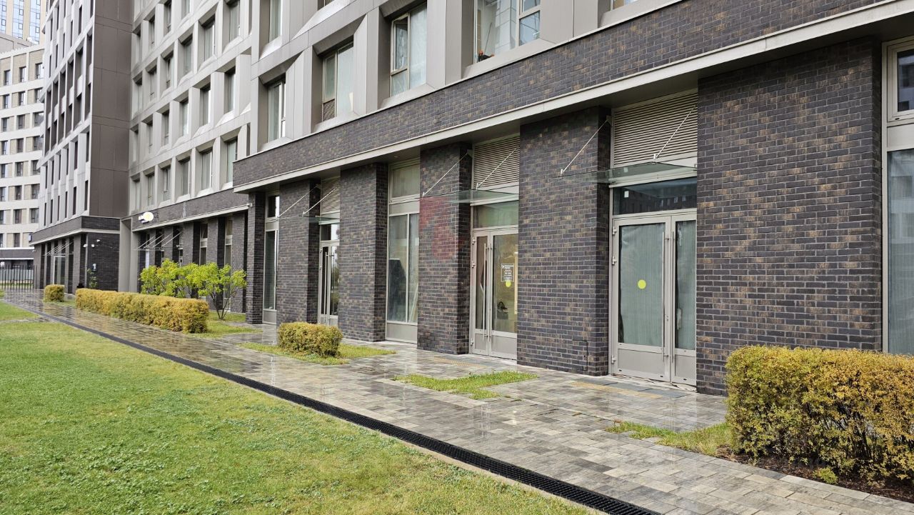 Отдельный круглосуточный вход с внутреннего двора ЖК Бизнес класса Alia. Можно разместить вывеску над входом. Большие панорамные окна в высоту всего помещения.
