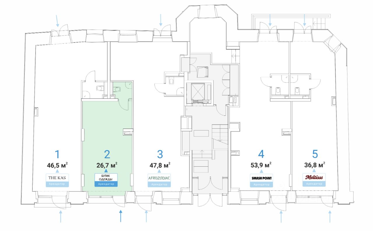 Продажа Street Retail помещения торгового назначения площадью от 26,7 на 1 этаже нежилого здания.