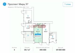 Лот: 37408. Помещение свободного назначения формата Street Retail в СВАО Москвы. Первый этаж жило 10-ти этажного дома. 1 минута пешком до станции метро Алексеевская. Плотный жилой массив. Рядом ВДНХ, парк Останкино. Активный пешеходный трафик от метро.