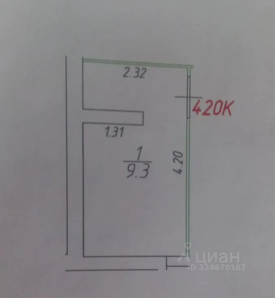 Общая площадь9,3 м²