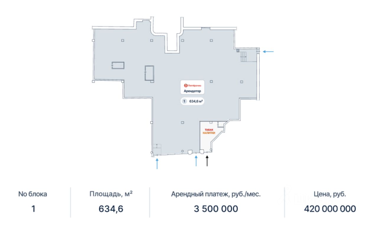 Долгосрочный договор аренды на 10 лет, арендная плата 3 500 000 рублей в месяц, НДС, коммунальные платежи и электричество оплачиваются арендатором отдельно. Схема сделки: договор купли-продажи недвижимости (ДКПН)