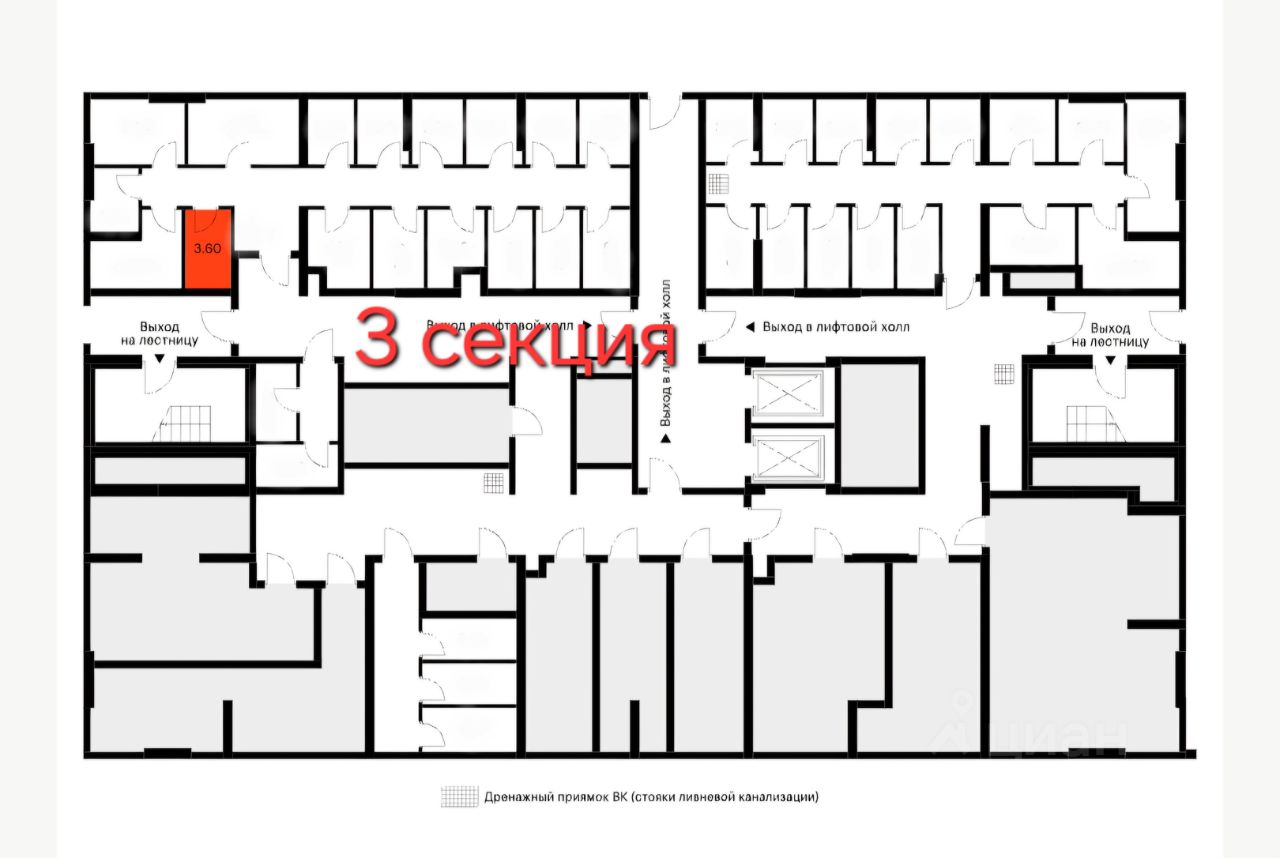 Продам кладовое помещение площадью 3.6м² под секцией 3. Над кладовой коммуникаций нет.