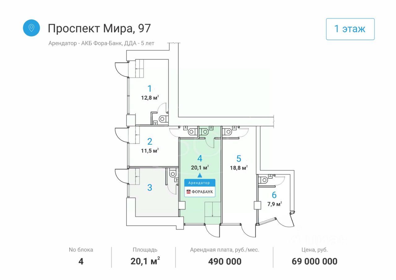 1095153 Предлагается к продаже готовый арендный бизнес с крупным коммерческим банком АКБ "Фора-Банк" (АО), одним из устойчивых участников финансового рынка, имеющим порядка 130 отделений в 16 регионах России и головной офис в г. Москве. Наличие надежного банковского арендатора федерального уровня формирует предсказуемый и стабильный арендный поток, снижая риски для инвестора и повышая ликвидность актива.