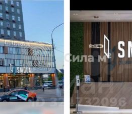 БЦ "Smola" после реконструкции 2021 года: 17 этажей, развитая инфраструктура (фитнес, кафе, банк, магазины), высокий пешеходный и автомобильный трафик. Парковка вдоль здания, охрана 24/7.
