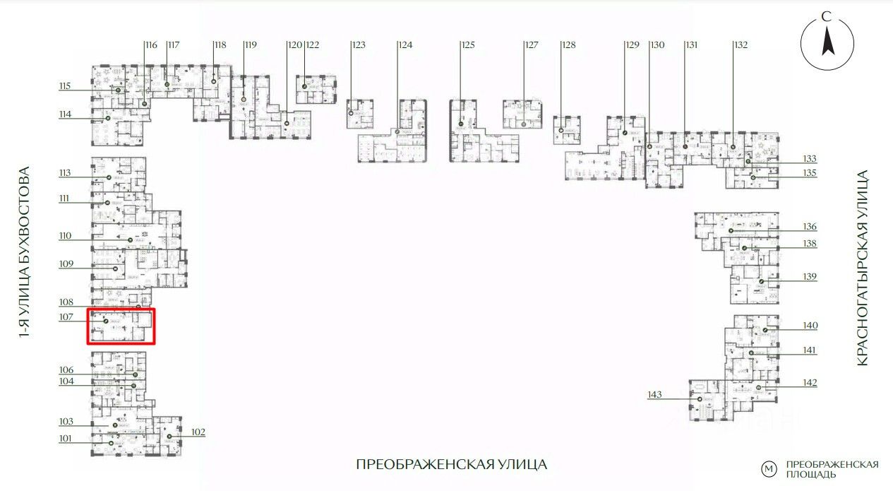 -5 минут пешком от станции метро "Преображенская площадь";
