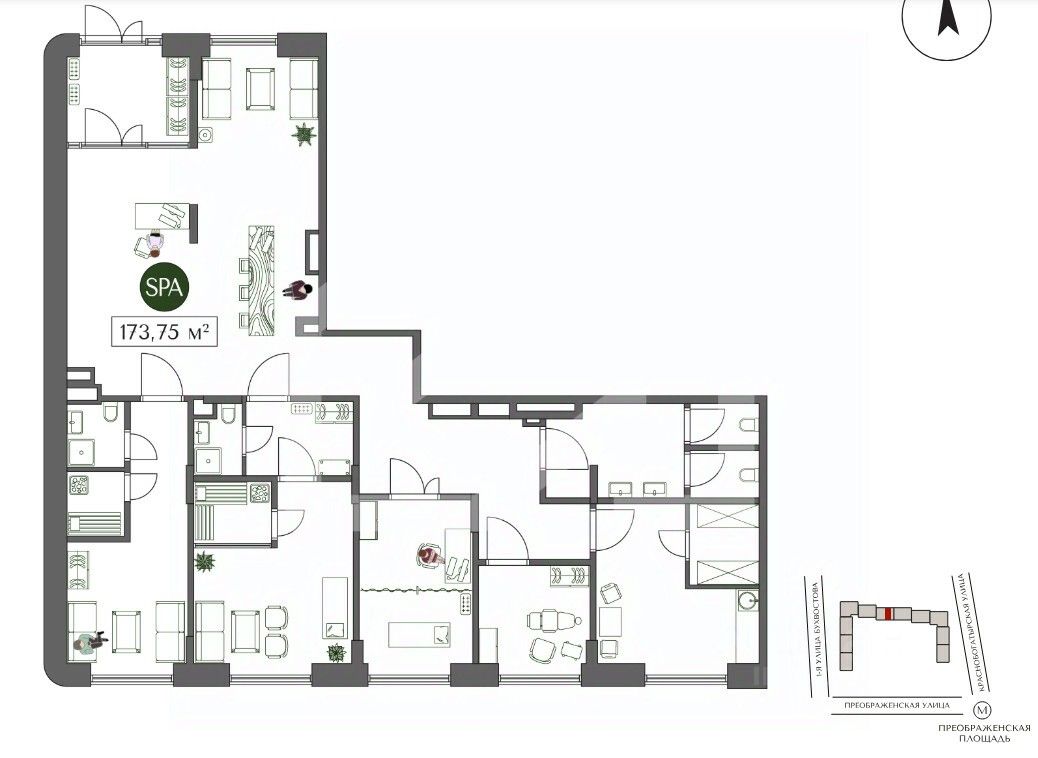 743887 . Предлагаем помещение свободного назначения формата Street Retail, площадью 176,4 кв. м, расположенное на первом этаже жилого дома в ЖК "Преображенская площадь". Без комиссии для покупателя.