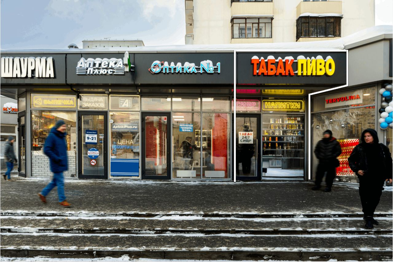 Торговое помещение на первой фасадной линии на 1 этаже жилого 8-этажного дома. Интенсивный пешеходный и автомобильный трафик. Развитая торговая, деловая и административная инфраструктура.