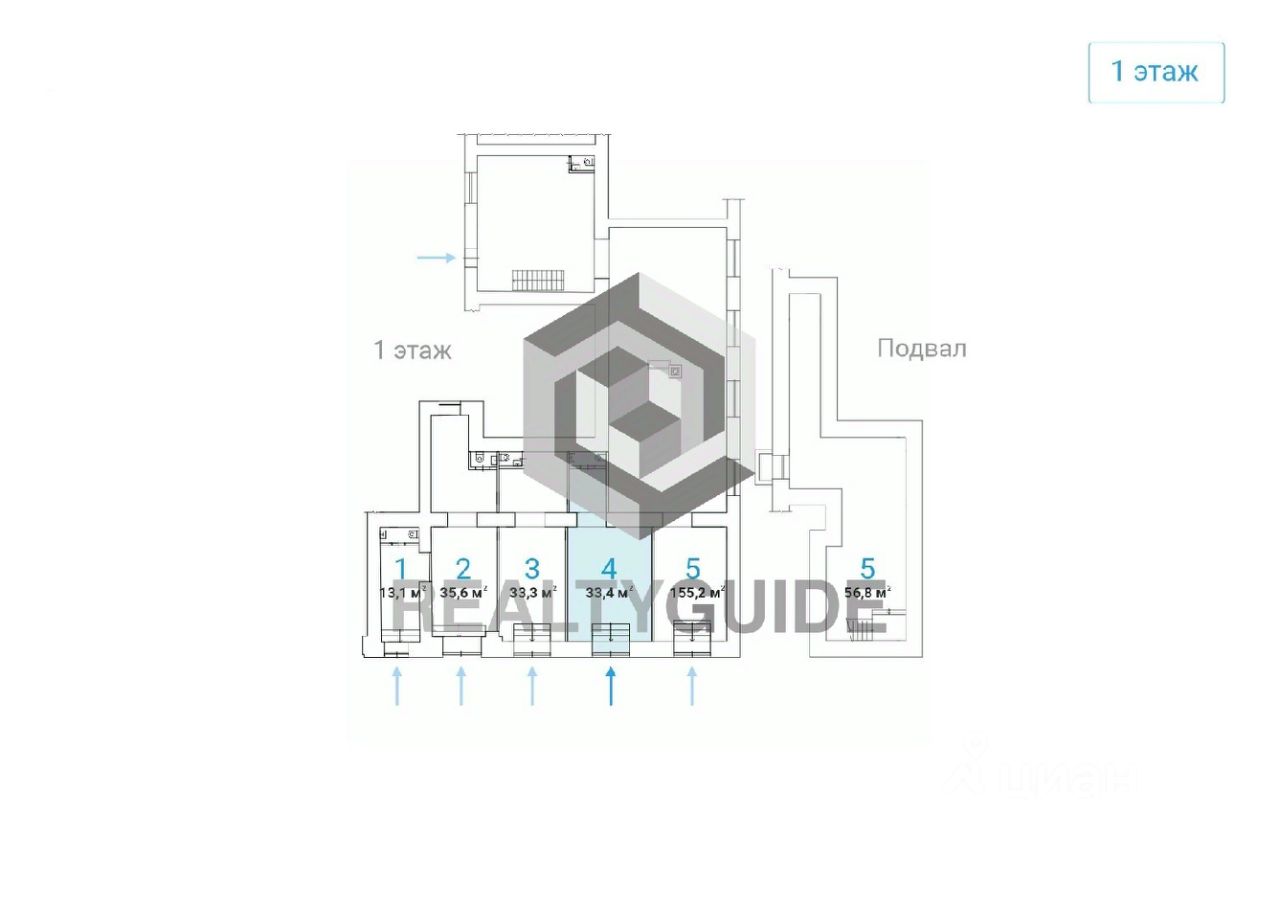 Помещение торгового или свободного назначения (ПСН) расположенное на 1 этаже жилого здания. Планировка — открытая (свободная), высота потолков — 4,3 м. Отлично подойдёт под любой вид деятельности: торговое помещение, магазин, ресторан, кафе, аптека, салон красоты, банк, офис продаж, кофейня и др.