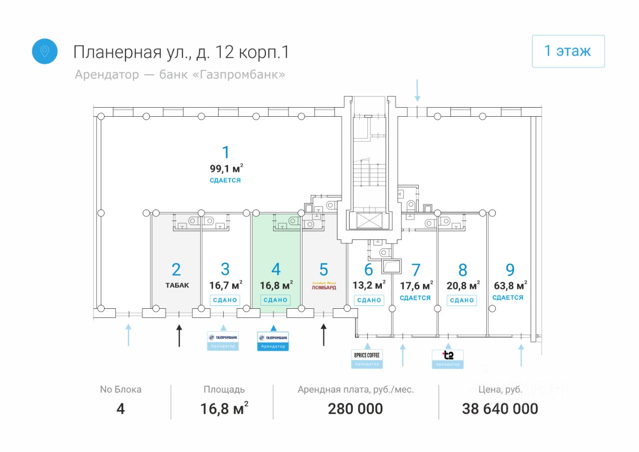 Продажа Street Retail помещения торгового назначения на 1 этаже жилого здания. Планировка — свободная, перекрытия — ж/б, высота потолков — 3,7 м.