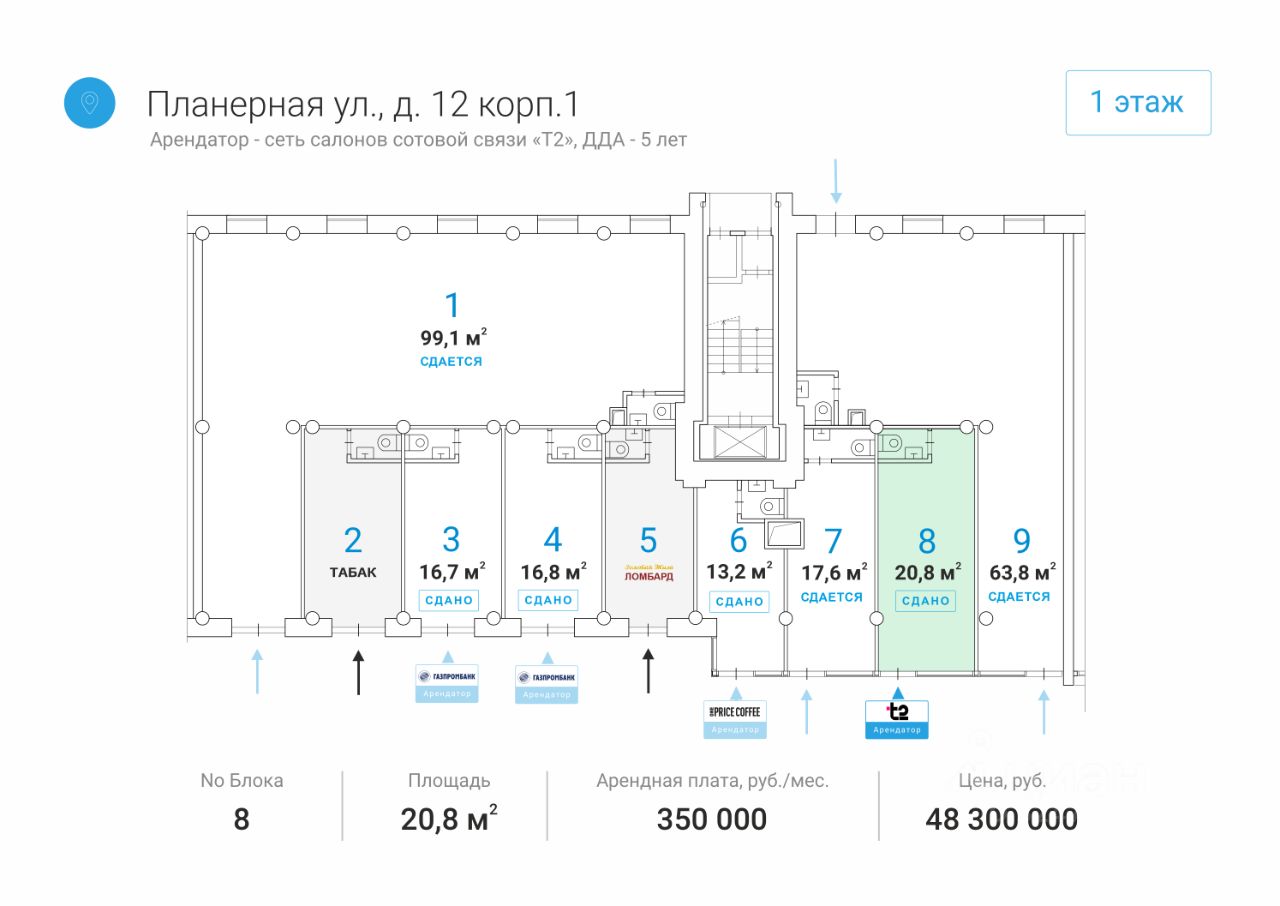 Планерная,12к1, СЗАО | Помещение с действующим арендатором у метро Планерная