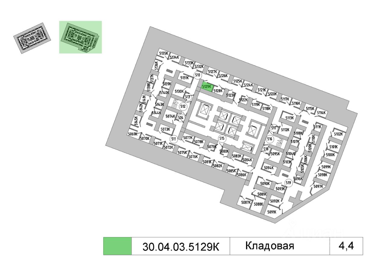 Продаю кладовое помещение площадью 4,4, м² в подвале нового многоквартирного дома ЖК Событие 4, Москва, ул. Василия Ланового д.6, 3 корпус, кладовка на -5 этаже, номер 5129